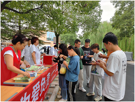 在活动中,学校邀请了湖州市妇保院的医生为学生义诊,医生们为同学进行现场答疑解惑,分享和解读科学、正确的生殖健康知识。环渚街道计生协的工作人员也应邀来到活动现场,为同学们发放科普宣传品,通过有奖问答等形式,一起为我们的活动加油助力。在本次活动中,总共发放了700余份科普宣传单,吸引千余名同学参与。