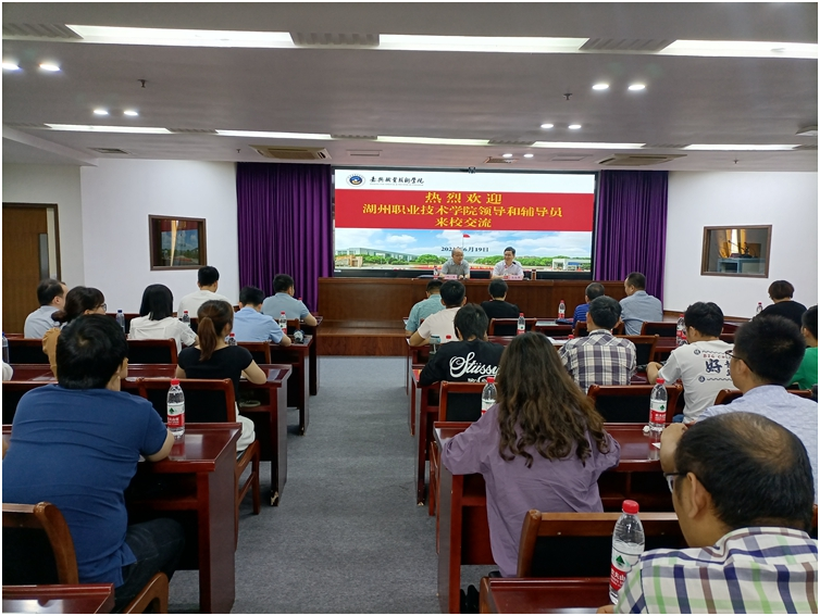 在嘉兴职业技术学院学习考察期间,得到了党委委员、副校长庄应强以及相关部门负责人热情接待,并重点介绍了学校情况、办学优势与学生管理特色。双方就学生公寓管理、学生安全、劳动教育、辅导员队伍建设等工作进行了深入交流,并实地考察了公寓智能化管理系统和公寓党建文化建设情况。