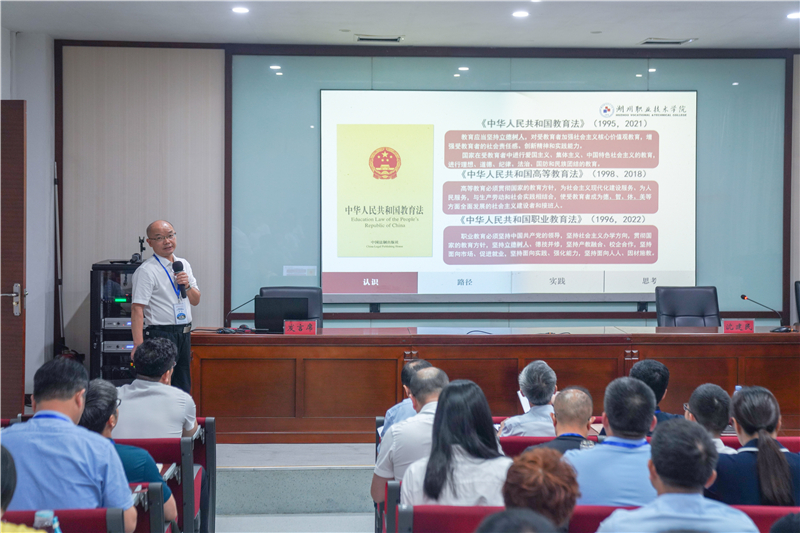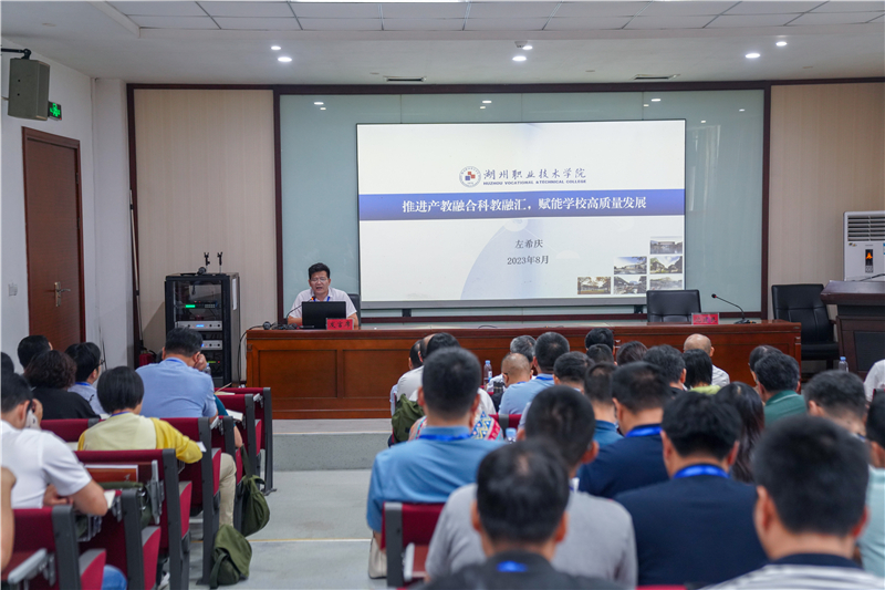 沈建民围绕《学校高质量发展的三个问题再思考》作专题报告。他强调,要深入实施新阶段人才强校战略。一是深入分析总结,清醒认识短板。2017年师资队伍建设年以来,学校把教师队伍建设作为办学的第一资源,教师队伍整体水平不断提升,人才引进成效显著、人才培育成果明显、岗位聘任职称改革深入推进,与此同时要坚持目标导向、问题导向,对标对表,认清短板。二是坚持人才强校,突出顶层设计。坚决落实校本人才观,提档升级人才强校战略,不断壮大教师队伍、优化教师结构、提升教师素质;以“八个坚持”为根本遵循,系统构建人才队伍建设,牢固树立人才引领发展、人才成就事业的共识,大力推进提质增效的人事制度改革。三是实施创新举措,激励发展动能。按照学校高质量发展目标,科学制定引才规划,注重优化结构和梯队建设,不断创新人才引进工作;制定实施“登峰、镜湖人才”培育计划以及《专业带头人遴选培育办法》《教学、科研创新团队建设计划》《教授培养引进方案》等,持续加大人才培育力度。要适应产业需求优化调整专业。一是对照双高标杆,深入分析省内国家、省高水平专业群布局以及学校专业群布局,找出差距问题;二是结合学校实际,全面了解省市产业政策,把握产业发展需求,紧跟湖州主导产业,办出专业优势特色;三是紧跟职教发展大势以及行业人才需求,加强专业调研,做好专业布点分析,优化专业整体设置,加快实现转型升级。要健全深化改革创新的治理体系。2014年以来,学校党委提出“改革八条”,持续深化改革创新,形成了一整套办学价值体系,实现了系统性的重塑和全方位的变革,对标职业教育本科、新校园建设以及“十四五”规划,要树立质量文化理念,进一步推进内涵发展,持续健全学校新发展阶段的治理体系,高水平推进学校治理现代化。