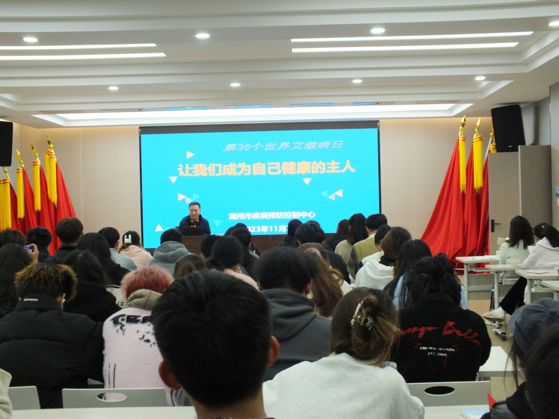 2023年12月1日是第36个“世界艾滋病日”,今年我国的宣传主题是“凝聚社会力量 合力共抗艾滋”。11月27日下午,学校特邀湖州市疾控中心艾滋病性病防治专家和禁毒办的警察,在党群服务中心举办“禁毒防艾”的专题讲座。禁毒办首先通过宣传资料讲解、仿真毒品的展示,帮助同学了解新型毒品及其危害。随后疾控专家深入浅出地讲解了艾滋病的传播途径、预防及检测等相关信息,聆听讲座的同学表示,经过下午的讲座,对禁毒防艾的知识有了更深入地了解,李同学说“我们应该树立每个人是自己健康第一责任人的生活态度”。