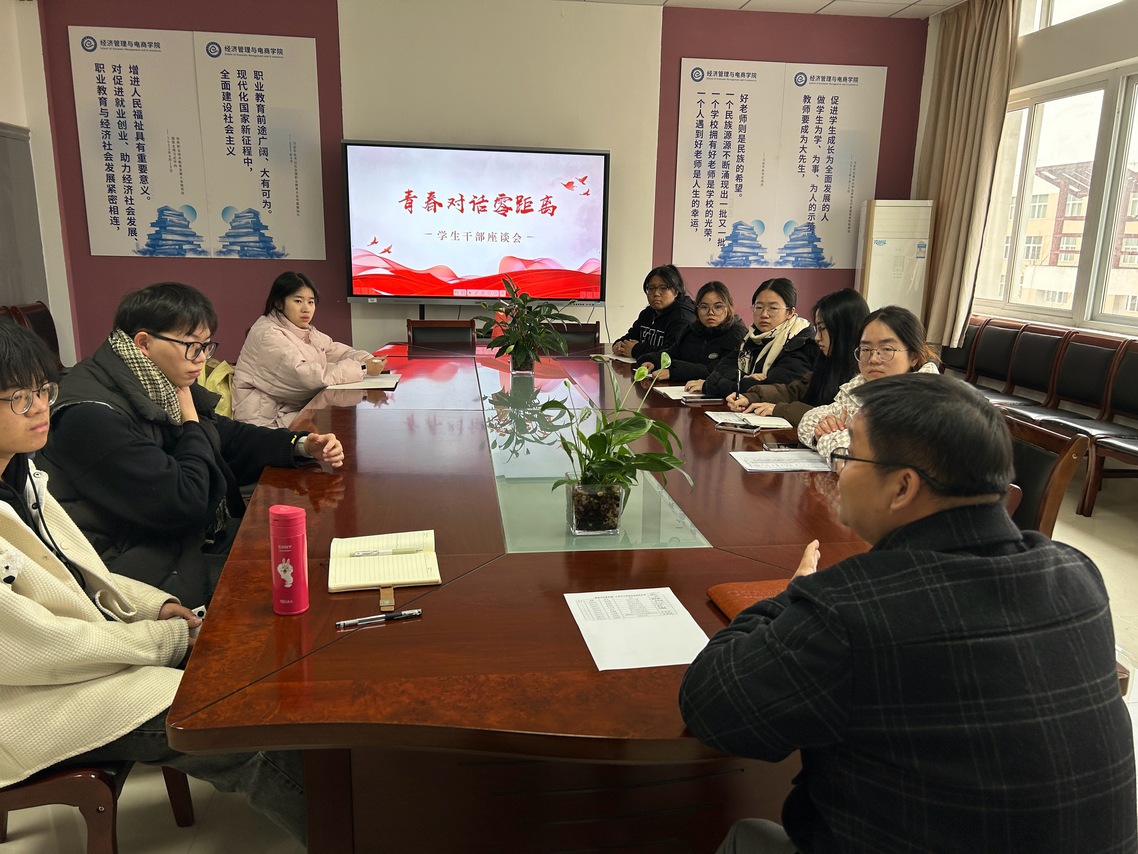 学生干部是广大学生中的骨干力量,是联系师生的重要纽带。为切实了解新一届学生干部的工作状况,进一步增强学生干部的先锋意识、责任意识和服务意识,经济管理与电商学院于12月15日举办了“经”日有约第七期师生座谈会——“青春对话零距离”之学生干部座谈会。学院党总支副书记、学院各学生组织主要负责人参加本次座谈会。