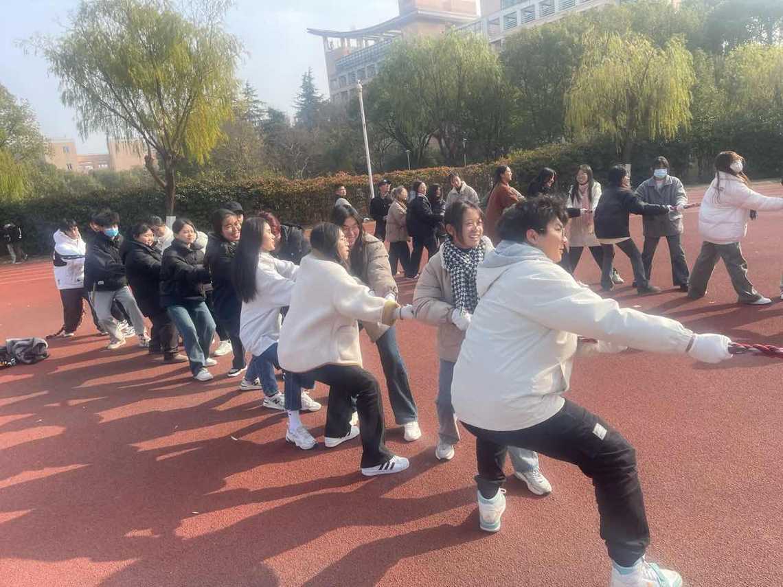 赛场上气氛热烈,每位队员都精力充沛、朝气蓬勃,展示个人技能水平的同时,又充分体现出团队协作能力。大家身体力行,享受快乐运动,传承民族文化,增进了师生的情感交流,欢声笑语中享受游戏的快乐,现场洋溢着欢乐和团结的氛围。场外的班级啦啦队成员们仿佛也身处比赛之中,热情饱满,加油声回响在整个田径场,将比赛气氛推向高潮。经过激烈角逐,最终英语2302班获得了拔河比赛的第一名,人力2302班获得了击鼓颠球比赛的第一名。