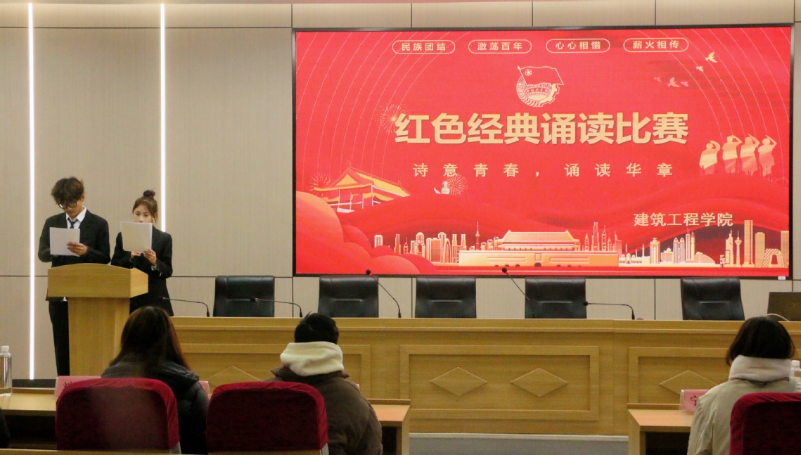 为了进一步引导大学生深入了解红色文化,弘扬和传承红色精神,帮助大学生坚定文化自信、建好精神家园,12月19日晚,建筑工程学院在14222报告厅举行了“诗意青春,诵读华章”红色经典诵读比赛。