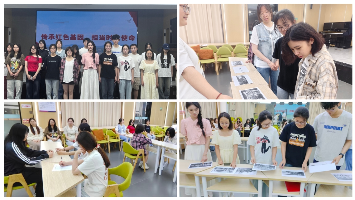 党的历史是党与人民共同的精神财富,青年学子需从历史中汲取奋进力量,以担当践行时代使命。本次活动创新设计三大特色环节:“跨越时空的职场对话”环节、“光影中的先辈记忆”环节、“百年征程拼图挑战”环节。在“跨越时空的职场对话”环节中,以面试的形式组成跨时空对话场域,通过抽取党史人物卡片,以情景模拟的形式在角色代入中探寻先辈精神与当代职业价值观的共鸣;“光影中的先辈记忆” 环节,以姓名抢答为“接力棒”,在紧张刺激的站位传递中,直观感受先辈们坚毅的面容与崇高品格;“百年征程拼图挑战”环节,将14张承载时代记忆的事件图片,按照党的发展的时间轴线精心梳理,在团队协作中清晰勾勒出“救国—兴国—强国”的百年壮阔奋斗图景,实现对党史发展脉络的深度认知与情感共鸣。