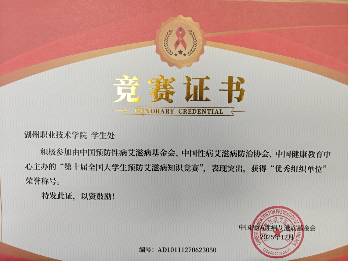 此次获奖,不仅是对我校在艾滋病预防宣传教育工作上所做努力的肯定,更是对我校始终坚持“健康第一”教育理念,全面落实“三全育人”,着力培养学生综合素质与社会担当的生动体现。学校将继续深化健康教育内涵,创新活动形式,引导更多师生关注健康、珍爱生命、服务社会,为推进“健康中国”建设持续贡献高校力量。(文/陆琪)